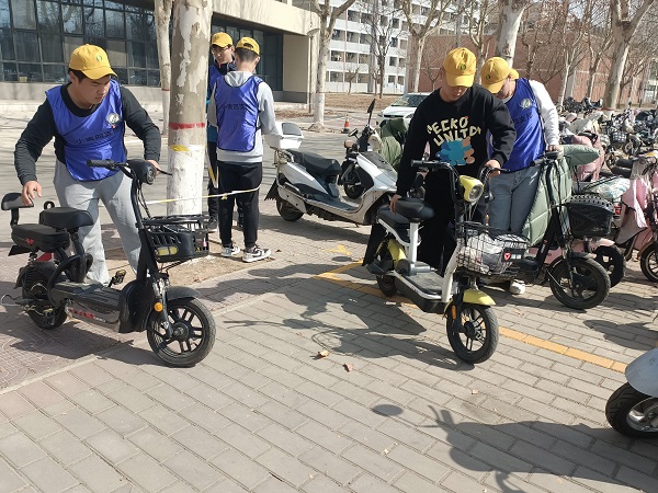 上午11;00,小麦四支部志愿服务小队集合完毕,大家统一穿着志愿者服装和帽子,积极自愿参与学雷锋活动,共同规范摆放车辆,及时提醒同学规范停车,将自行车、电动车、摩托车、共享单车停放在划定的指定区域内,并做到按位、统一朝向停放,不占用人行道和消防通道,勿随意摆放。宣传文明停车知识,积极倡导雷锋精神,增强大家的出行安全意识和学雷锋的自觉性,为共建文明校园尽力。