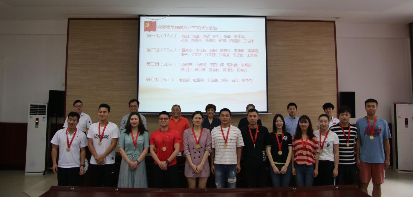 学院党委委员向毕业生了定制奖牌,每一块奖牌上背面为西南大学校徽,正面印有党徽、毕业生党员姓名、入党日期和“不忘初心、牢记使命”寄语。