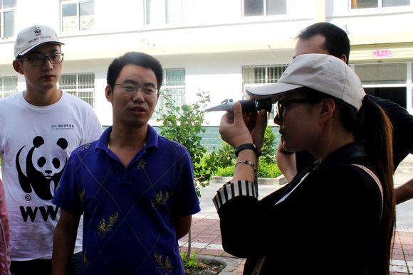 随后,朱老师请产业发展科工作人员向大家介绍了林业局收购当地中蜂蜂蜜的情况并向我们演示了测定蜂蜜含糖量的过程。“这是便携式阿贝折射仪吧!”队员郝建鹏问工作人员。“不错,这小伙挺专业!”说着,他向队员们演示了用便携式阿贝折射仪测量蜂蜜含糖量的过程,并让我们亲自体验。“看这个仪器镜头中的Baume,Brix,Water%分别表示的是相对密度、可溶性固形物含量和含水量,我们今年收购的蜂蜜含糖量都要达到41%这个标准。”工作人员张庆祥这样说,“我们林业局职工老张从去年开始养殖中蜂,从刚开始的7箱蜜蜂发展到现在的40箱,今年产出的800斤蜂蜜全部达到收购标准。”