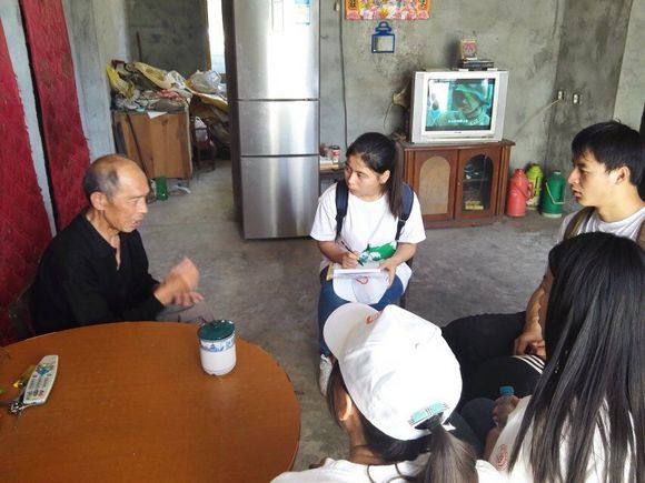 通过与林场基地的老师联系交流,队伍根据当地具体情况,将活动内容统筹规划后,决定以与村委会对接和入户走访交流相结合的方式深入了解情况。队伍一行在队长毛丹丹带领下来到寨沟村村委会同村支书雷天顺短暂交流后获得了当地农户基本情况和产业结构的一手资料,又通过走访农户深入交流了解情况。得知当地正在进行“绿宝生态农业合作社”的筹备组建,并成功注册“秦耕”商标,利用本地区为享誉世界的“朱鹮放飞基地”这一优势,充分研发出天然无污染的系列产品。但是当地的经营模式比较落后,农产品自产自销,存在销售渠道少,附加值低的弊端,导致经济收益不高。此外,队员还了解到当地青壮劳动力大都外出打工,村内留守老人、留守儿童较多等一系列情况。