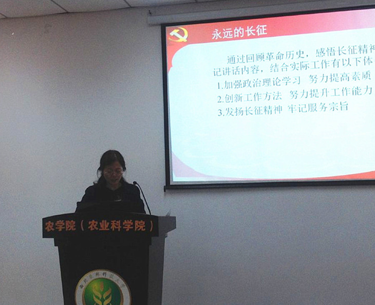 会上,与会党员纷纷表示要在自己工作岗位上,发扬长征精神,走好新的长征路,为实施校院两级管理,实现学院十三五规划目标而努力工作。